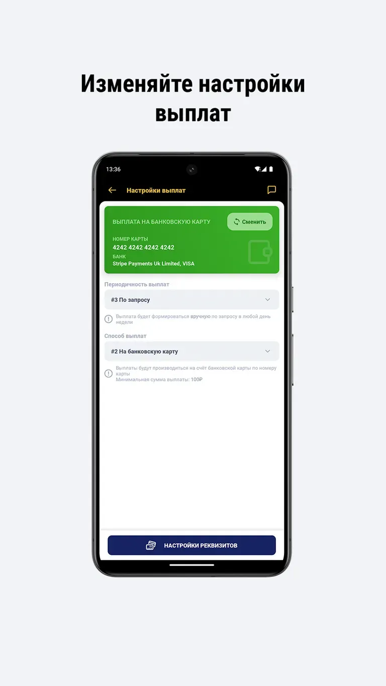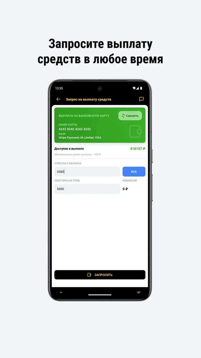 - Запрашивать выплаты.
